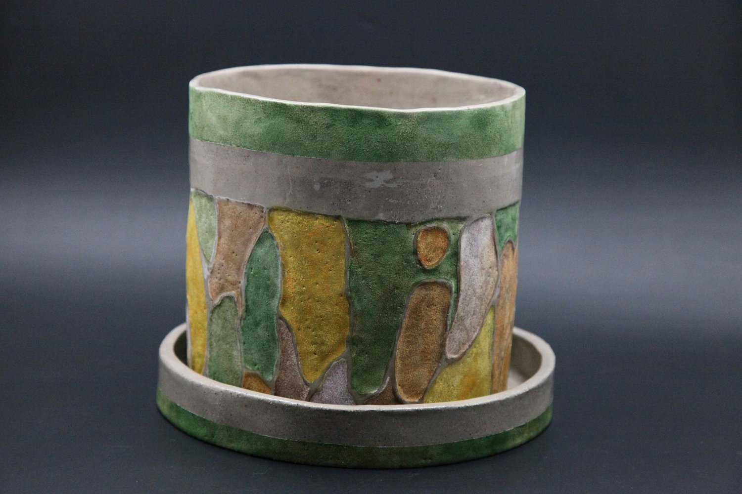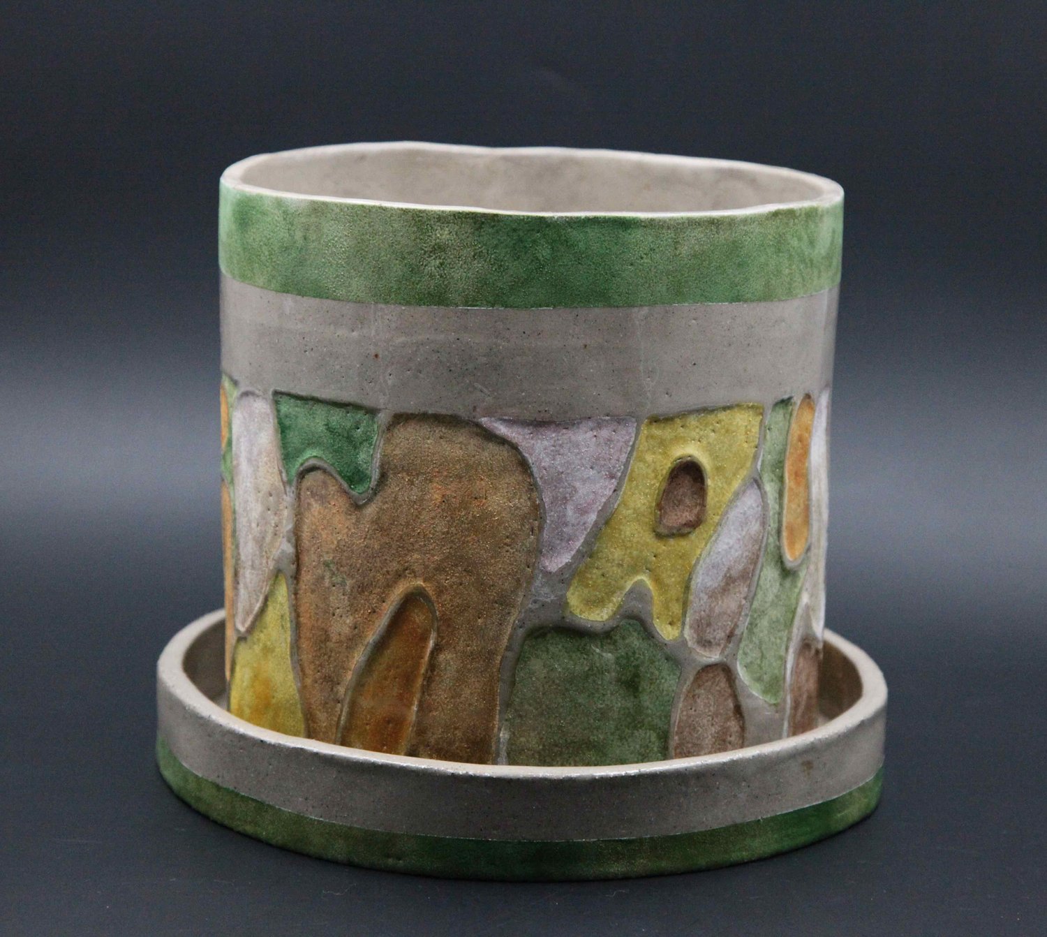 Céramique en grès réalisée au modelage Emaillée et décorée avec des couleurs vitrifiables Pièce unique de la collection "Correspondance" Taille : 19 (h) x 18 ( diam) cm